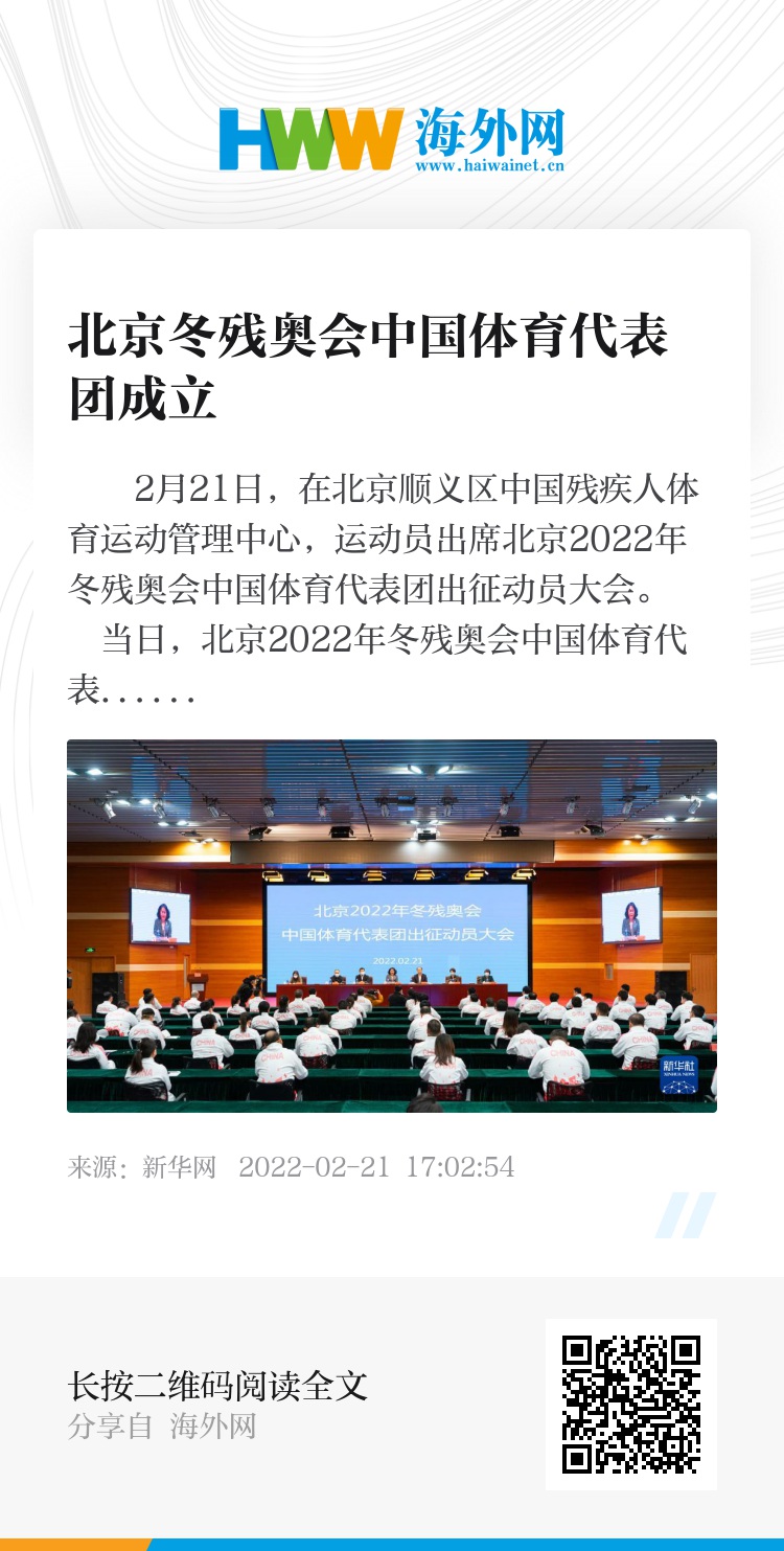 当日,北京2022年冬残奥会中国体育代表团在京成立。北京2022年冬残奥会将于3月4日至13日举行。