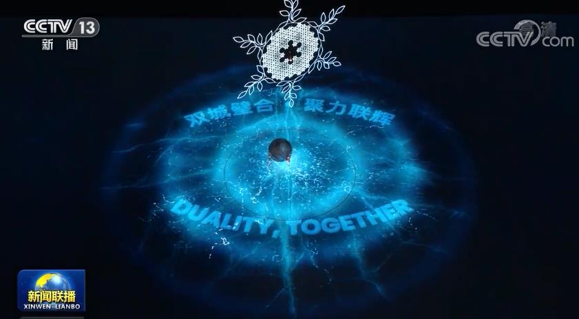 大屏幕播放短片《再见!一起向未来!》,在本届冬奥会即将结束的时刻,定格下中国人民同世界各地来宾依依惜别的情谊。