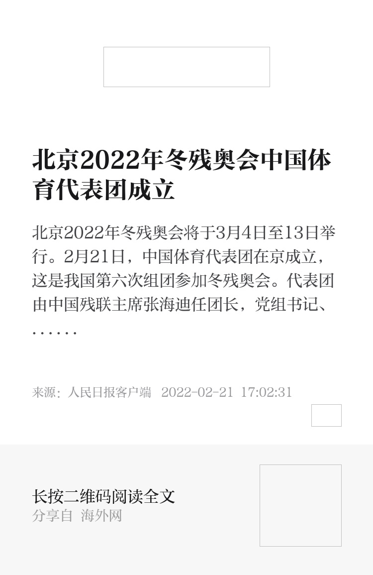 北京2022年冬残奥会将于3月4日至13日举行。2月21日,中国体育代表团在京成立,这是我国第六次组团参加冬残奥会。代表团由中国残联主席张海迪任团长,党组书记、理事长周长奎任副团长(常务),副理事长王梅梅、张伟任副团长。