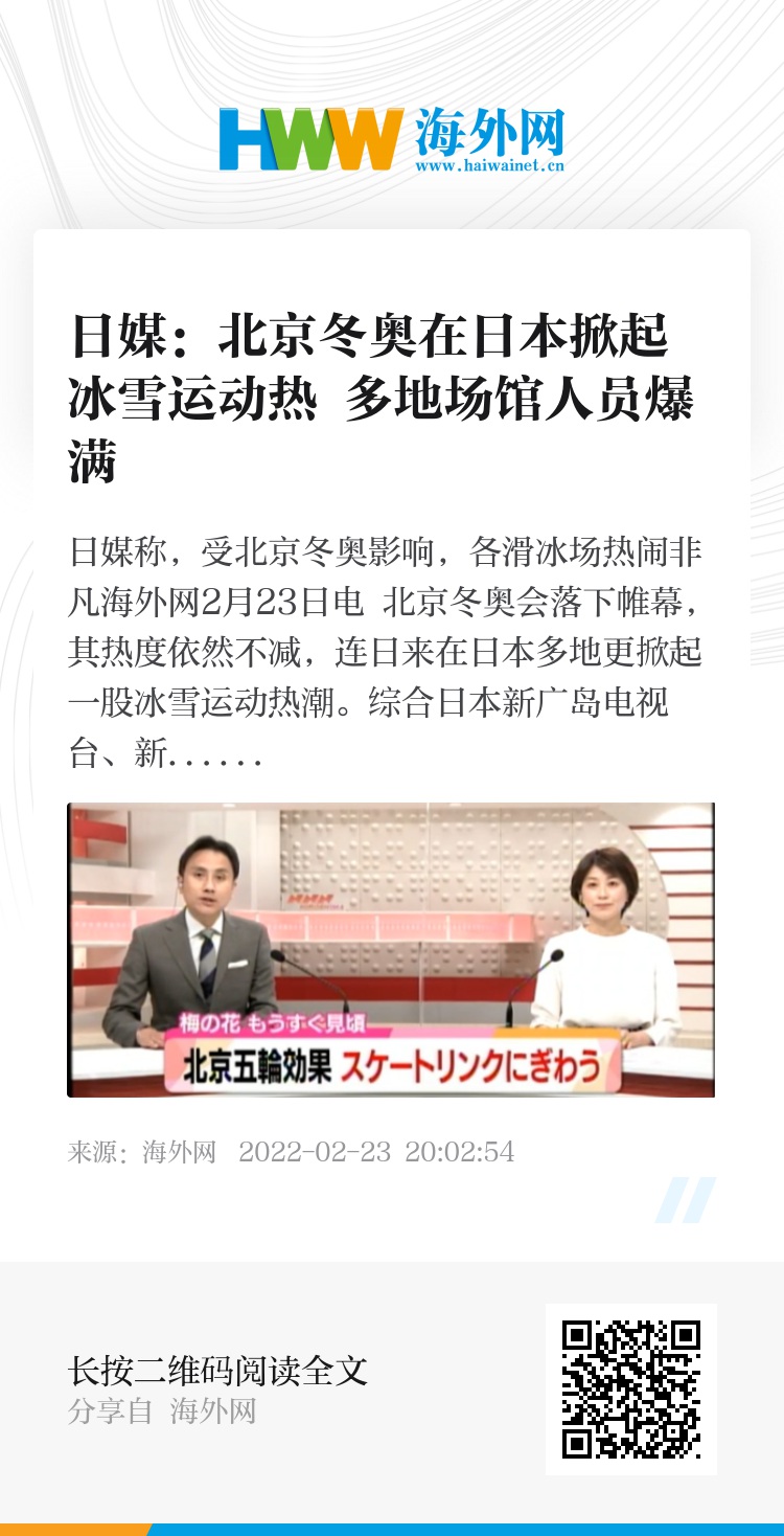 日媒称,受北京冬奥影响,各滑冰场热闹非凡