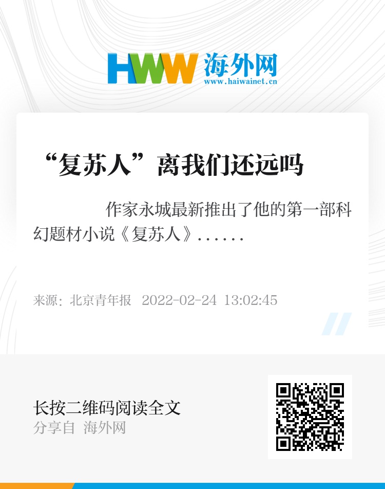作家永城最新推出了他的第一部科幻题材小说《复苏人》。顾名思义,“复苏人”是可以“复活”的人,小说讲述了7位被“冷冻”技术冬眠过后,又“复活”了的人,他们面对新世界的状态,开启新的人生。小说《复苏人》是文学和想象的结合,而现实版的“复苏人”真的存在吗?