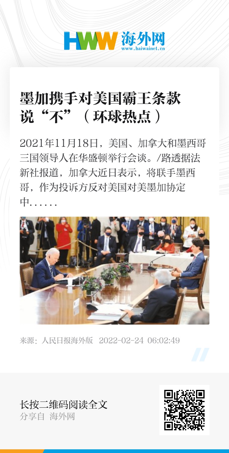美墨加协定即“美国—墨西哥—加拿大协定”,于2020年7月1日正式生效,取代《北美自由贸易协定》。该协定由美国主导签订,墨西哥和加拿大在谈判中做了不同程度的让步。近两年,美墨加协定在实际落实中屡生争议。分析指出,此番墨、加联合挑战美国对协定内容的解释,又一次暴露出三方在贸易领域存在的固有矛盾。在新冠肺炎疫情延宕反复、全球经济下行风险持续的大背景下,美墨加协定风波不断,给北美地区推进贸易自由化的进程蒙上阴影。
