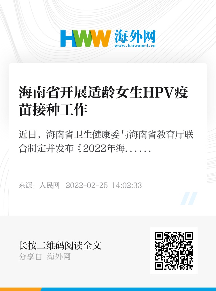 近日,海南省卫生健康委与海南省教育厅联合制定并发布《2022年海南省适龄女生HPV疫苗接种项目实施方案》(以下简称《方案》),2022年拟接种7.1万人,计划于3月份开展第一剂次接种。