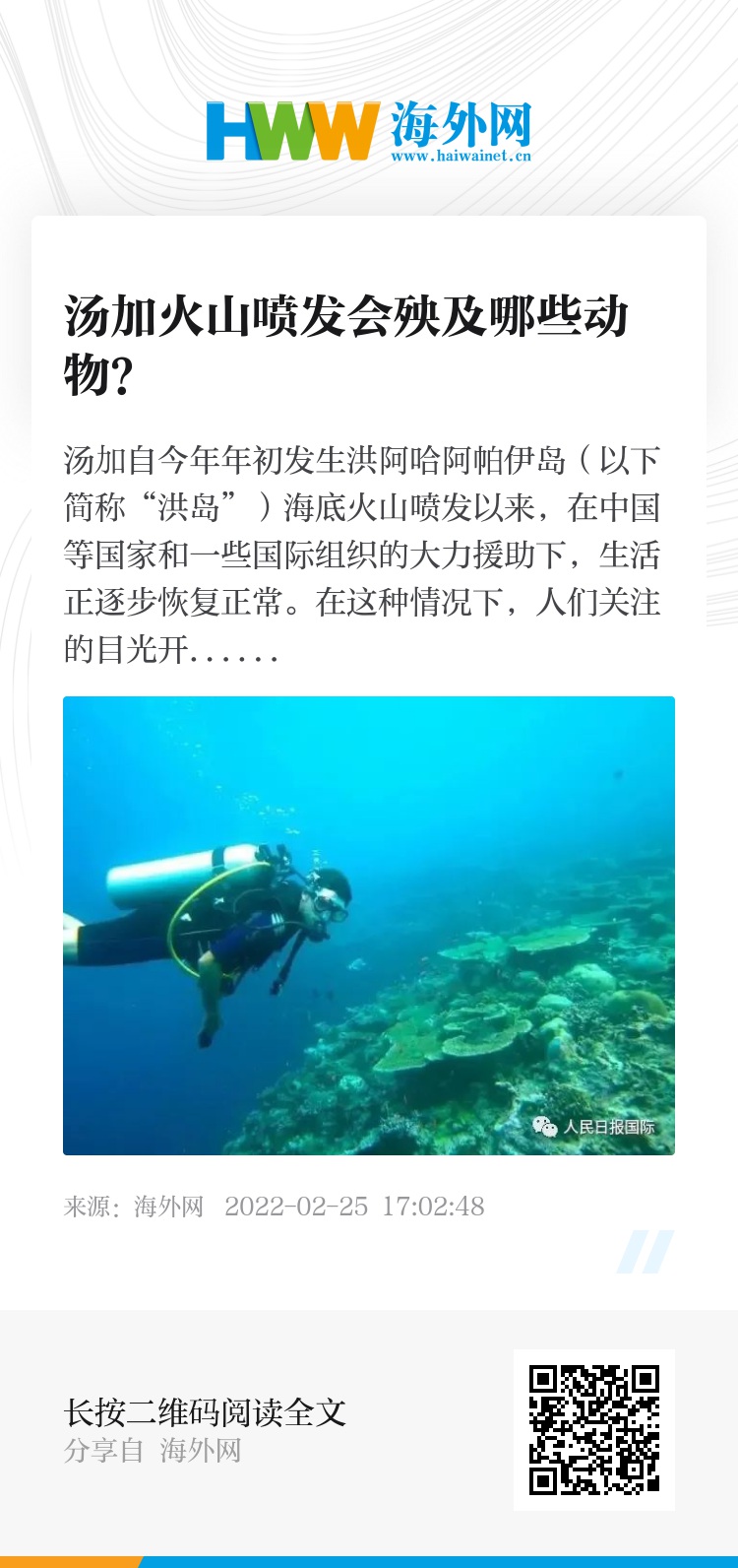 汤加自今年年初发生洪阿哈阿帕伊岛(以下简称“洪岛”)海底火山喷发以来,在中国等国家和一些国际组织的大力援助下,生活正逐步恢复正常。在这种情况下,人们关注的目光开始转向那些被火山喷发殃及的动物们。