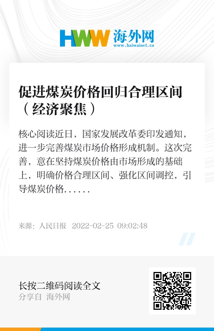 最后,这次确定煤炭价格合理区间并不意味着一成不变。“煤炭价格合理区间是在充分考虑成本的基础上确定的。”周伴学说,后续国家发展改革委将统筹考虑煤炭生产成本变化、能源行业发展等因素,及时充分听取行业和社会各方面意见建议,适时对煤炭价格合理区间进行评估完善。(记者 邱超奕)
