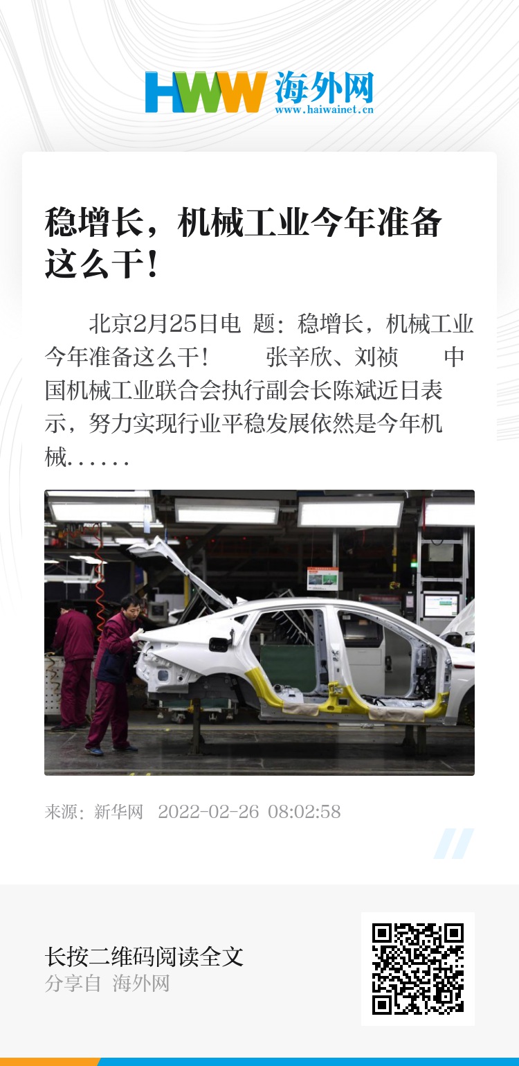 新华社北京2月25日电 题:稳增长,机械工业今年准备这么干!