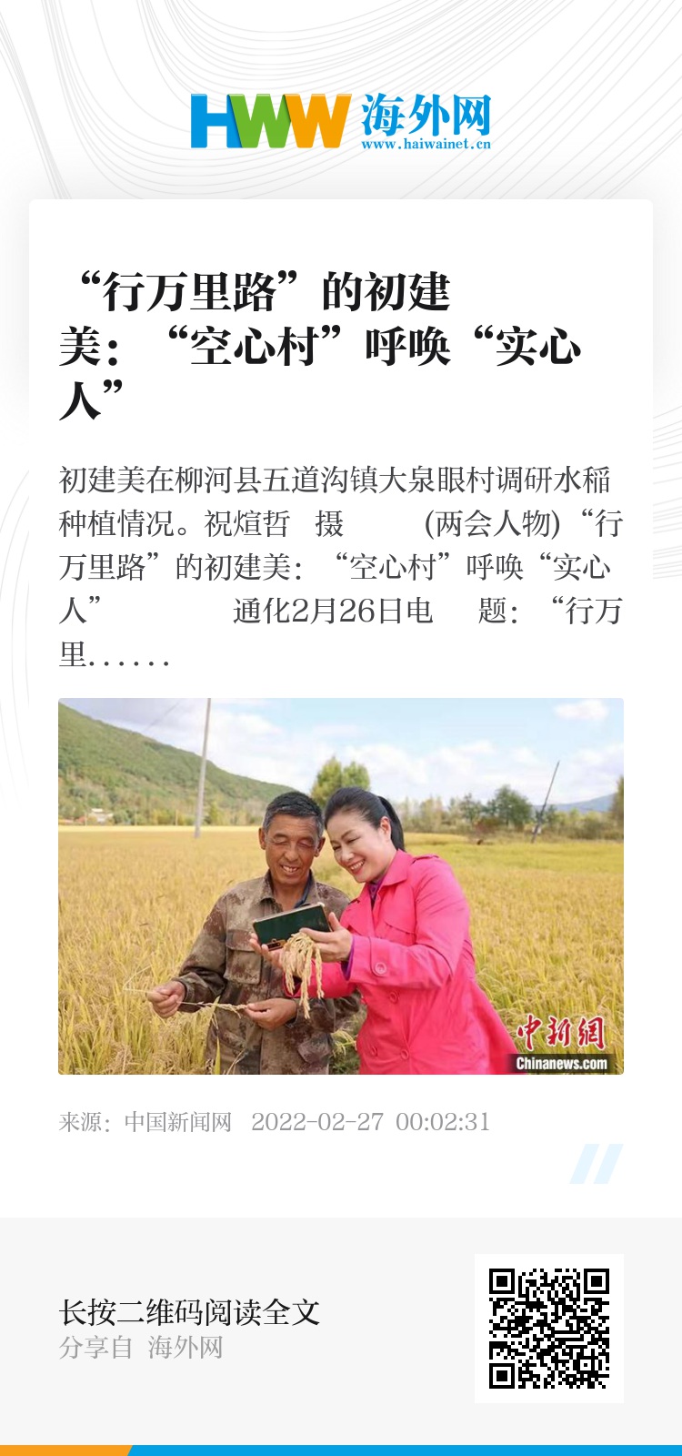 (两会人物)“行万里路”的初建美:“空心村”呼唤“实心人”