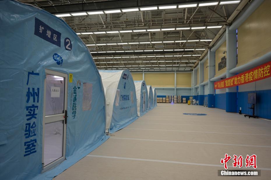 2月27日,广州金域医学集团援建的“猎鹰号”硬气膜实验室已投入使用。“猎鹰号”硬气膜实验室位于香港九龙公园体育馆,每天核酸检测量可达8万管。图为“猎鹰号”硬气膜实验室。 中新社记者 陈永诺 摄