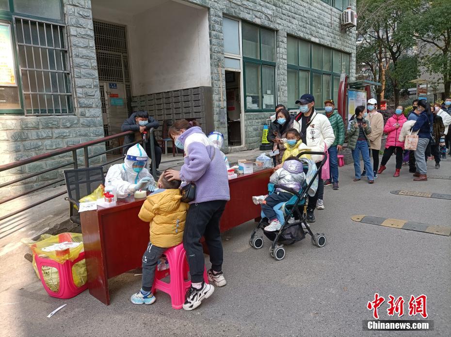 2月27日,市民在武汉市硚口区博学仕府小区核酸检测点进行核酸检测。据武汉市新冠肺炎疫情防控指挥部通报:2月27日0时至7时,武汉市新增新冠病毒核酸阳性病例2例,专家诊断为新冠肺炎(轻型)。2例确诊病例已及时转运至武汉市金银潭医院隔离治疗。病例病毒全基因组测序比对工作正在进行中。 中新社发 骆文德 摄