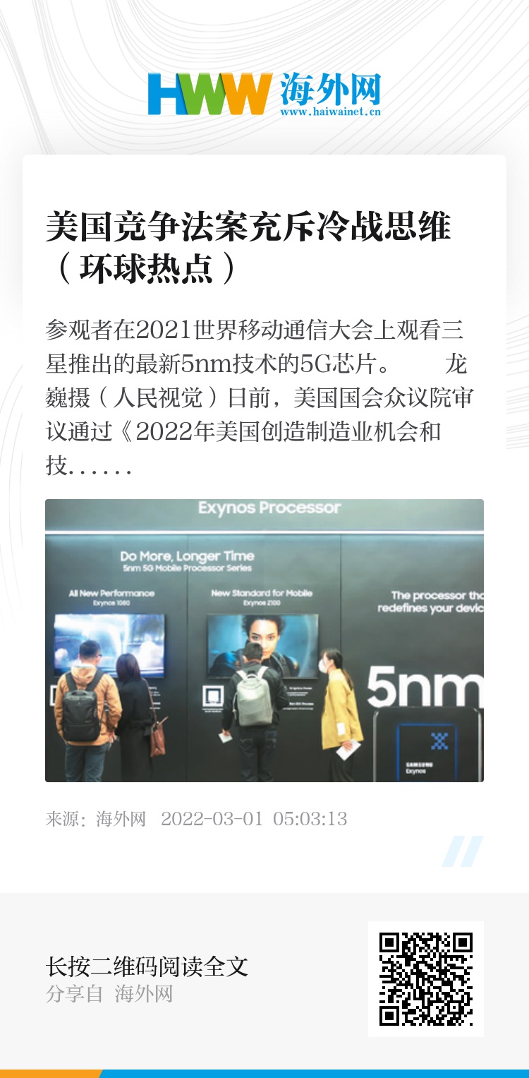 除了增强美国芯片制造和研发能力、改善供应链之外,众议院这份提案还包含大量涉华内容。美国筹款委员会主席理查德·尼尔将该法案称作“一项严厉打击中国滥用美国贸易法的法案”。不仅叫嚣与中国的全面竞争,该法案还打出“人权幌子”试图干涉中国内政,诋毁中国发展道路和内外政策,鼓吹开展对华战略竞争,就涉台、涉疆、涉港、涉藏等问题指手画脚。