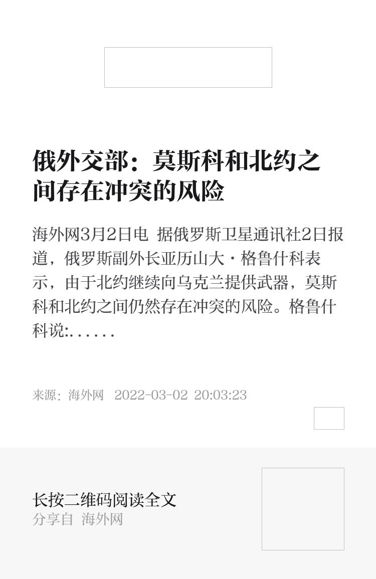 海外网3月2日电 据俄罗斯卫星通讯社2日报道,俄罗斯副外长亚历山大·格鲁什科表示,由于北约继续向乌克兰提供武器,莫斯科和北约之间仍然存在冲突的风险。