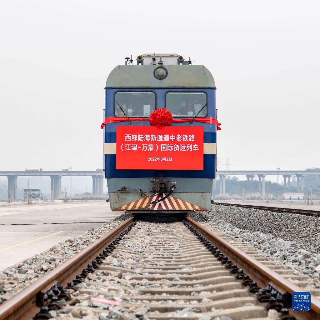3月2日,中老铁路(江津-万象)国际货运首发列车在小南垭铁路物流中心等候发车。新华社记者 唐奕 摄