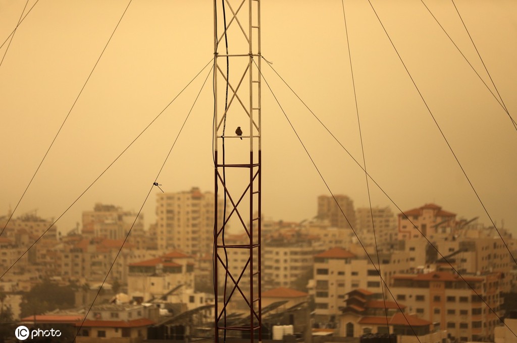 当地时间2022年3月6日,加沙地带,沙尘暴期间的城市景观。图片来源:IC photo