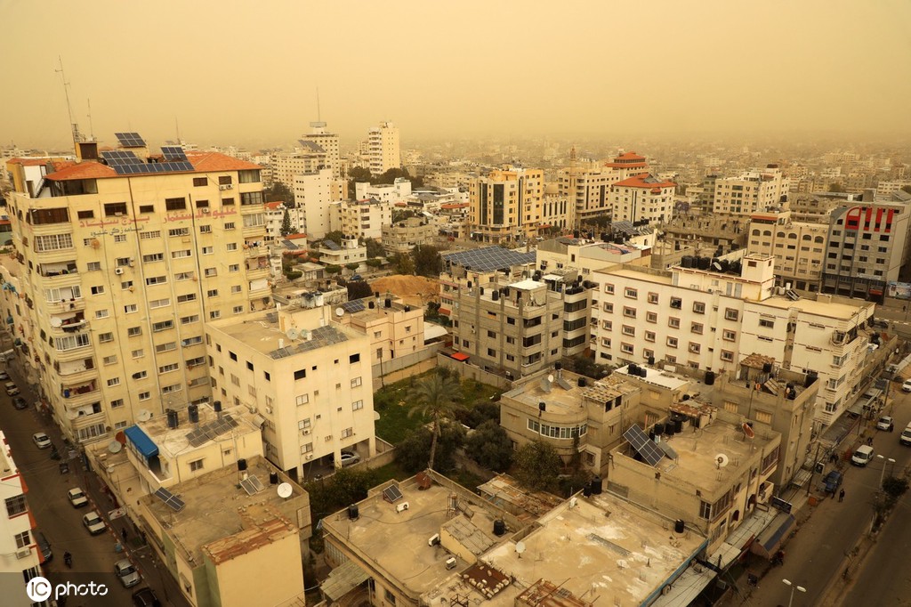 当地时间2022年3月6日,加沙地带,沙尘暴期间的城市景观。图片来源:IC photo