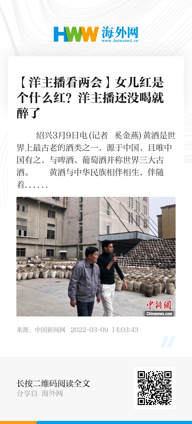 阳春三月,十里春风入酒觞。中新社、中新网“洋主播看两会”栏目特邀来自摩洛哥的留学生尤加,来到中国黄酒之都——浙江绍兴,对话全国人大代表、绍兴女儿红酿酒有限公司黄酒酿造运营中心主任章国强,探寻千年黄酒的前世今生。