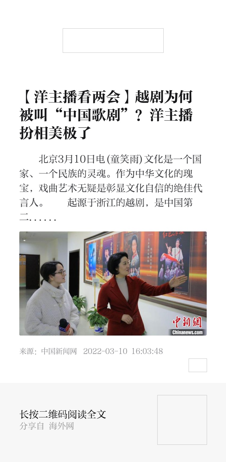 此次全国两会,中新社、中新网“洋主播看两会”栏目特邀来自罗马尼亚的留学生吴菲(中文名),来到浙江小百花越剧院,对话全国人大代表、浙江小百花越剧院院长王滨梅,探访越剧的文化历史,以及新时代下越剧发展的新思路。