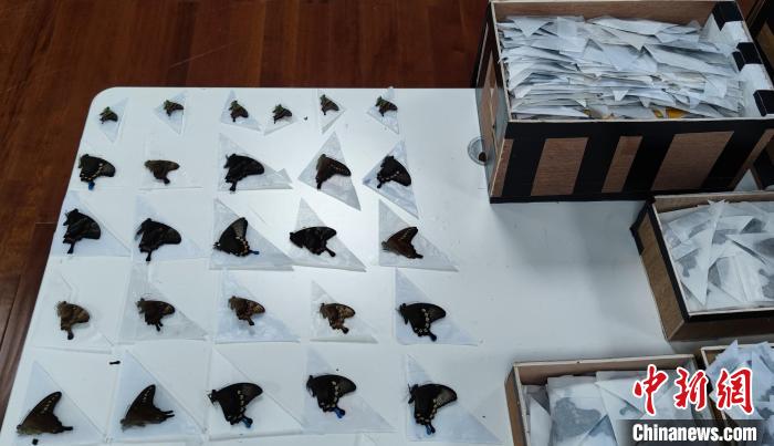 通报称,该批标本种类不一、数量繁多,均为完整形态的蝴蝶所制,共计5050枚。经初步鉴定,该批标本涉及凤蝶科等9个品种。