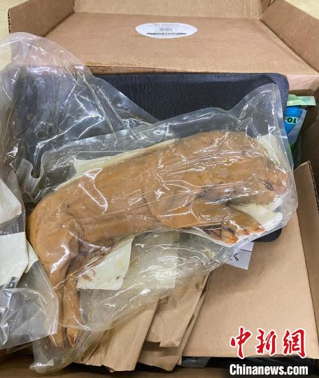 根据《禁止携带、寄递进境的动植物及其产品和其他检疫物名录》,(生或熟)肉类及其制品属禁止邮寄进境物品,特别是猪肉及其制品携带病原微生物风险较高。海关方面依法对该包裹进行截留,并开展下一步检测处置工作。