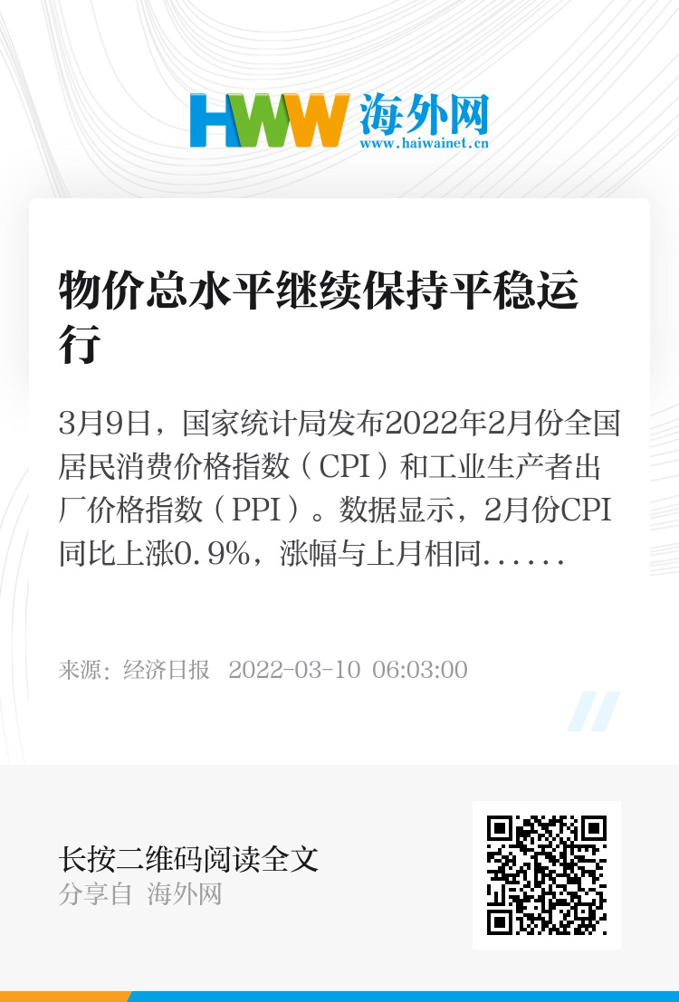 3月9日,国家统计局发布2022年2月份全国居民消费价格指数(CPI)和工业生产者出厂价格指数(PPI)。数据显示,2月份CPI同比上涨0.9%,涨幅与上月相同;环比上涨0.6%,略有扩大。PPI同比上涨8.8%,环比上涨0.5%。