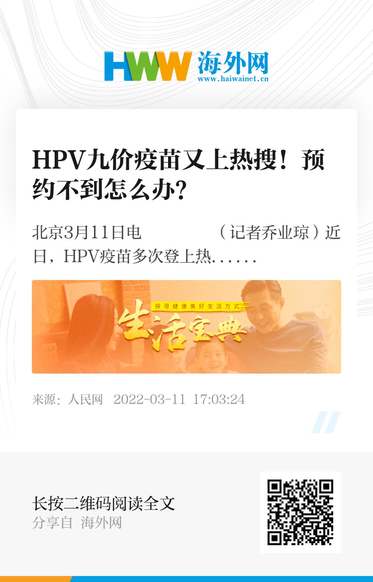 今年,国产二价HPV疫苗正式通过世卫组织预认证,可供联合国系统采购,成为第6个通过预认证的中国国产疫苗。其安全性和预防效力毋庸置疑。