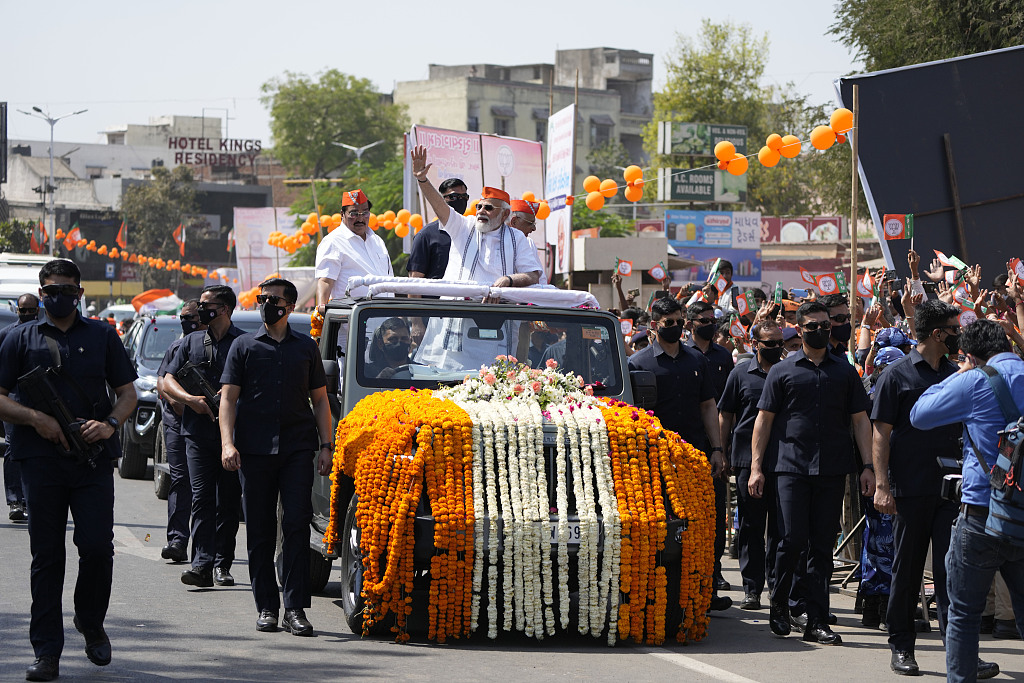 当地时间2022年3月10日,印度选举委员会陆续公布北方邦等5个邦地方议会选举结果,执政的印度人民党在人口最多的北方邦获胜,成为近20年来首个在该邦连续执政的政党。北方邦拥有2亿多人口,是印度人口最多的邦,该邦选举是印度民意的风向标,是印度大选的前哨站,赢得北方邦议会选举的政党,很可能将成为国家执政党。印媒认为,北方邦议会选举的胜利将有助于莫迪今后推动一些艰难的改革。图片来源:人民视觉