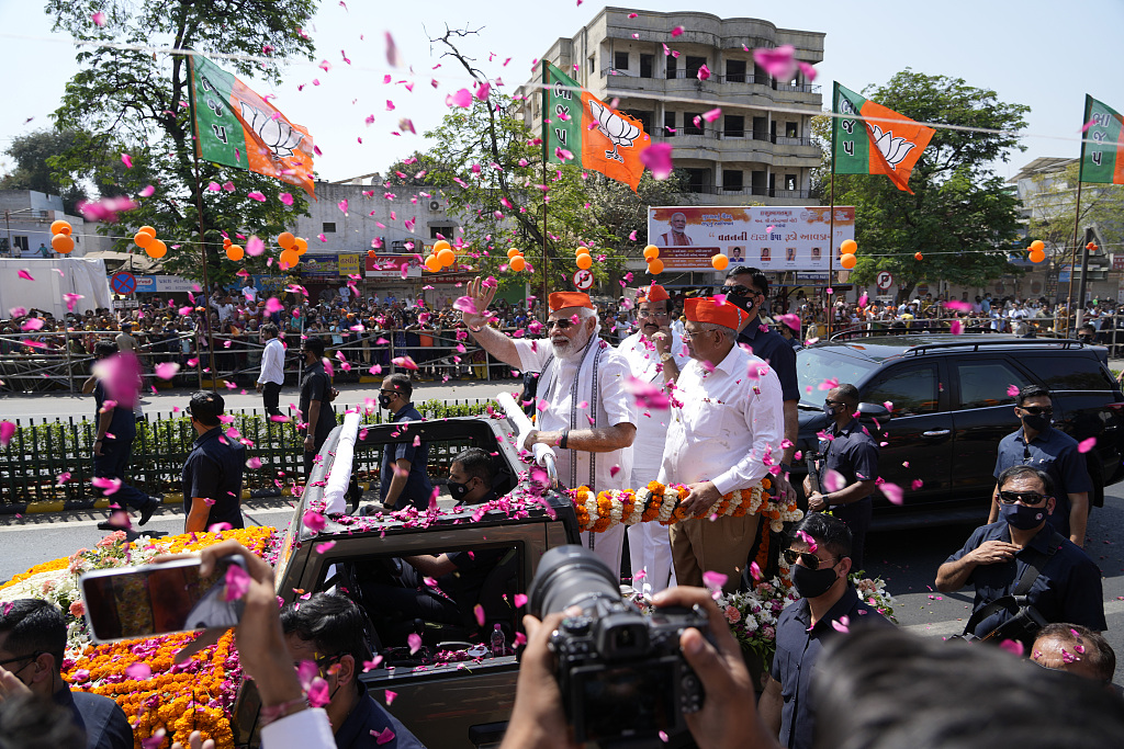 当地时间2022年3月10日,印度选举委员会陆续公布北方邦等5个邦地方议会选举结果,执政的印度人民党在人口最多的北方邦获胜,成为近20年来首个在该邦连续执政的政党。北方邦拥有2亿多人口,是印度人口最多的邦,该邦选举是印度民意的风向标,是印度大选的前哨站,赢得北方邦议会选举的政党,很可能将成为国家执政党。印媒认为,北方邦议会选举的胜利将有助于莫迪今后推动一些艰难的改革。图片来源:人民视觉