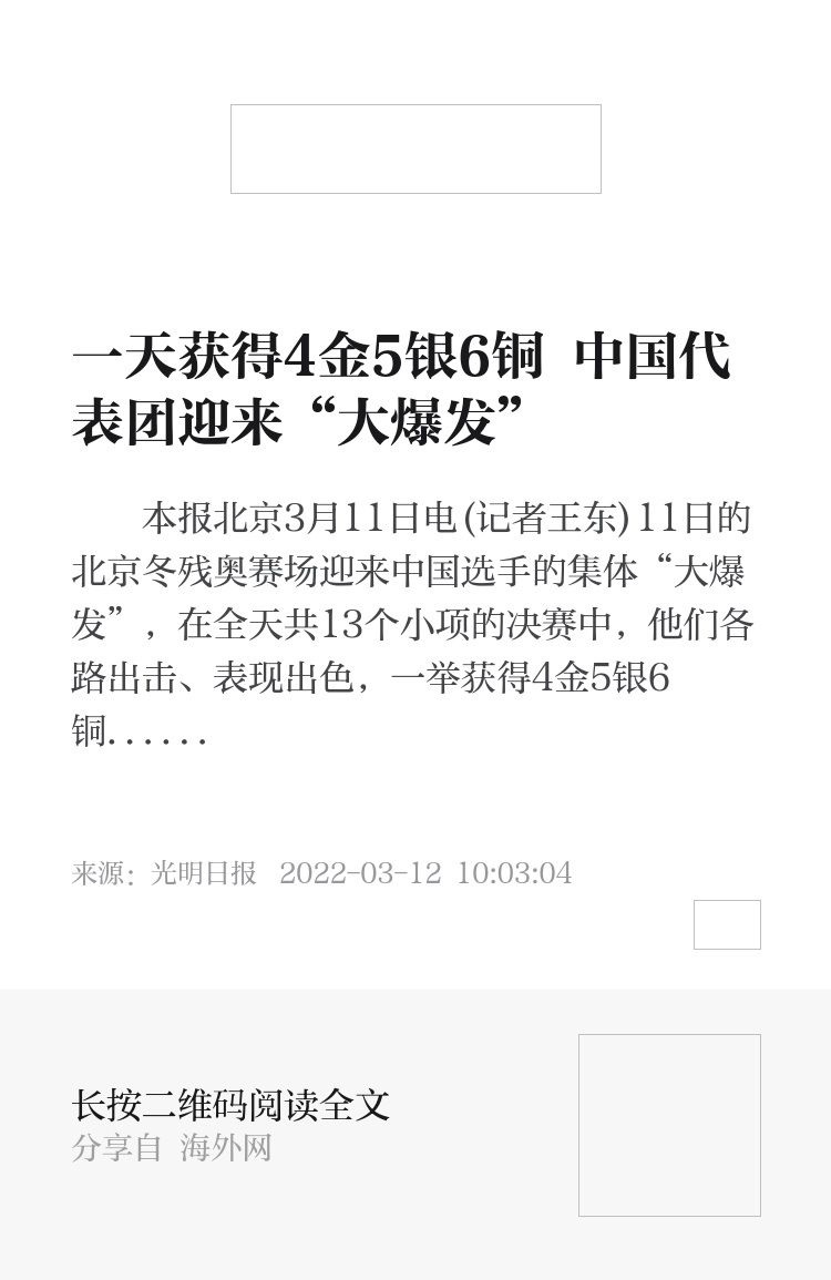 本报北京3月11日电(记者王东)11日的北京冬残奥赛场迎来中国选手的集体“大爆发”,在全天共13个小项的决赛中,他们各路出击、表现出色,一举获得4金5银6铜。目前,中国队已获得14金14银19铜共47枚奖牌,在金牌榜和奖牌榜上领先。
