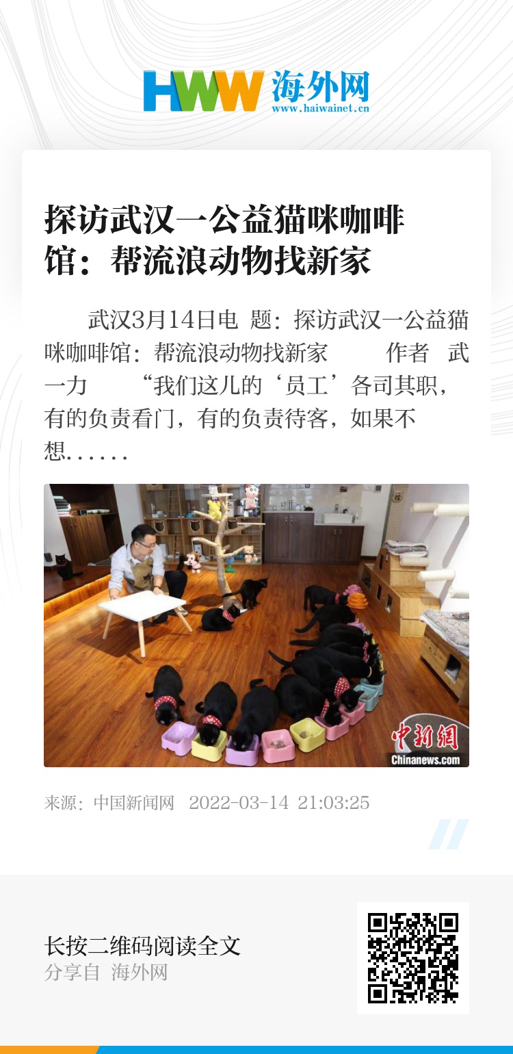 中新网武汉3月14日电 题:探访武汉一公益猫咪咖啡馆:帮流浪动物找新家