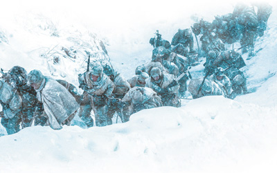 历史顾问王树增说,战争发生的盖马高原属于高寒地带,长津湖之战时,最低气温甚至低于零下40摄氏度。“由于当时国力所限,奔赴战场的绝大部分战士的防寒衣物都是不全的。而美军不但武器装备是一流的,被服装备也是一流的。在冰天雪地当中,两军交战时我军将付出怎样的代价可想而知。”王树增说,“但就在这样的装备差距之下,我军还是毅然入朝作战打击侵略者。只有客观表现出这样的差距,精神的伟大才能更好凸显。”