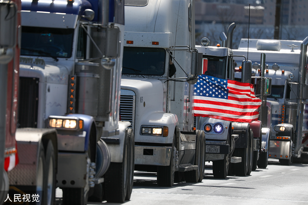 当地时间2022年3月16日,美国华盛顿特区,美国“人民车队”抗议活动持续。图源:人民视觉