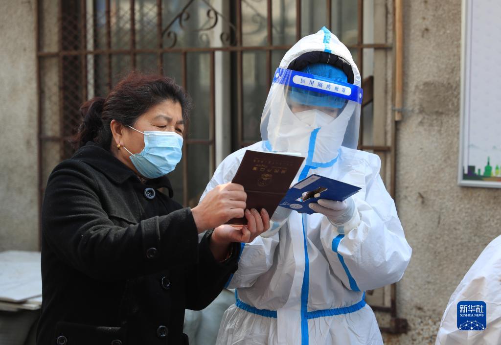 3月17日,在沈阳市大东区莲花社区检测点,医护人员指导市民进行登记。为抗击本轮疫情,沈阳市新冠肺炎疫情防控指挥部决定3月17日起在全市进行全员核酸检测。此时沈阳正遭遇降温天气,各个社区和部分爱心企业为抗疫医护人员和志愿者准备了热豆浆、暖贴等御寒物品,共克疫情。新华社记者 杨青摄