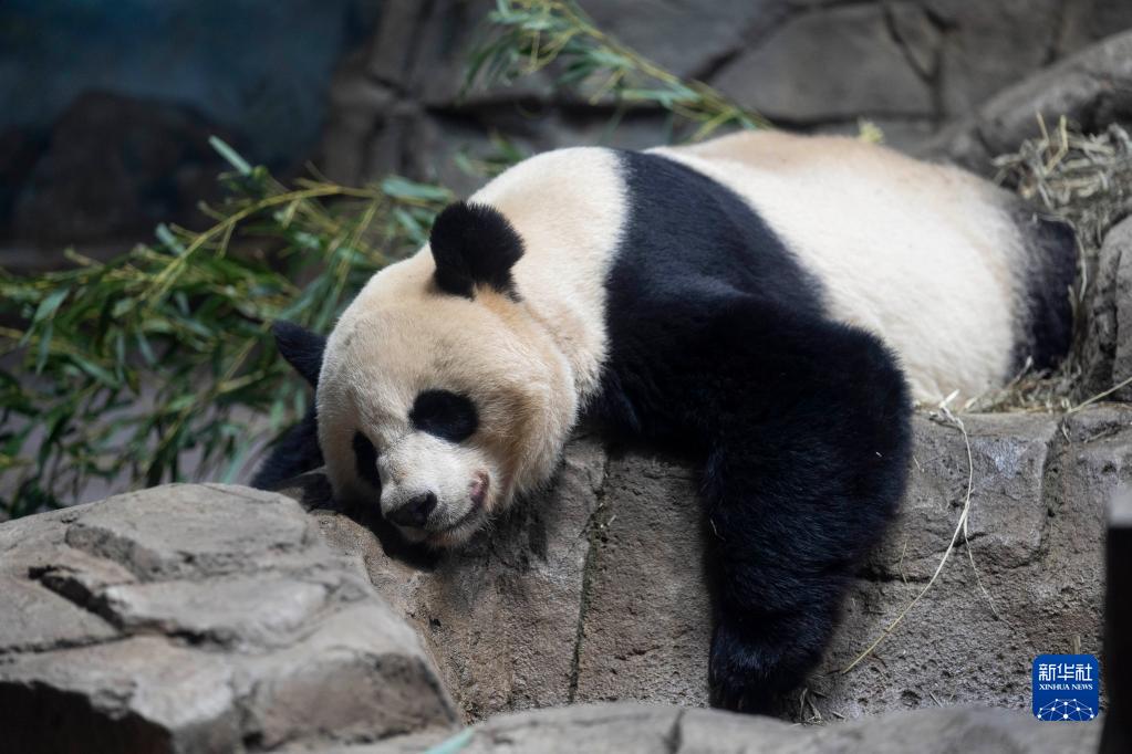 3月16日,大熊猫“美香”在美国华盛顿史密森学会国家动物园休息。位于美国首都华盛顿西北部的史密森学会国家动物园16日在大熊猫馆设立大熊猫家谱影廊,启动大熊猫项目50周年系列庆祝活动。新华社记者 刘杰 摄