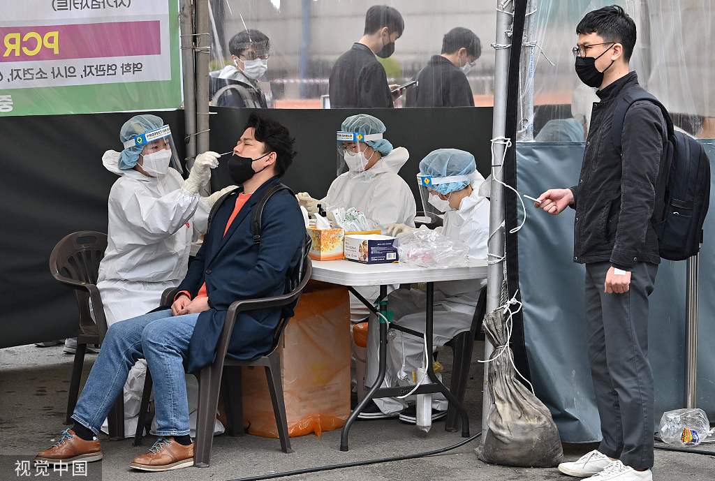 据韩联社报道,韩国中央防疫对策本部17日通报,截至当天零时,过去24小时新增新冠确诊病例621328例,这是韩国疫情以来单日新增确诊病例首次超60万例。图片来源:视觉中国