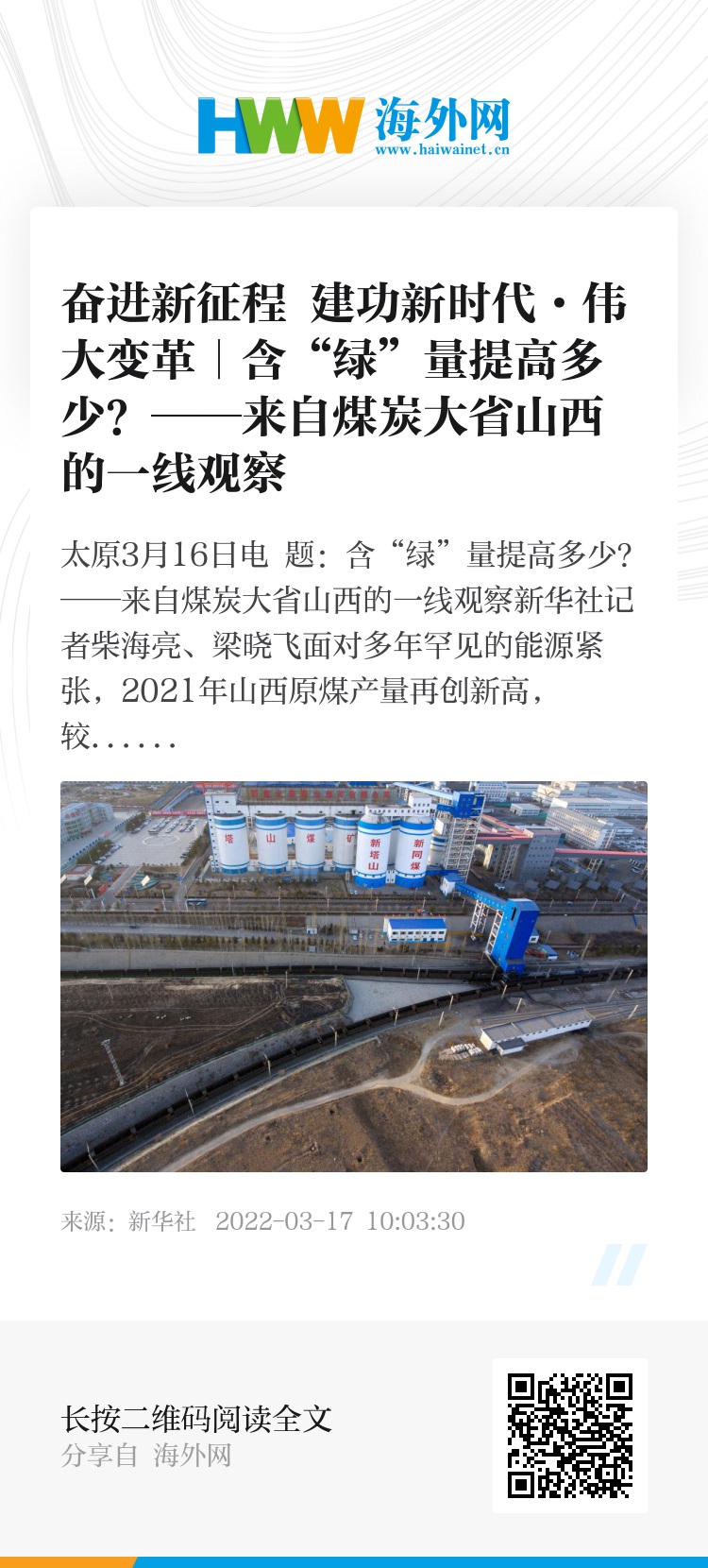 面对多年罕见的能源紧张,2021年山西原煤产量再创新高,较上年增产1.3亿吨。煤炭产量大幅增加,山西发展的含“绿”量有何变化?近日新华社记者在山西省部分产业园区进行探访。