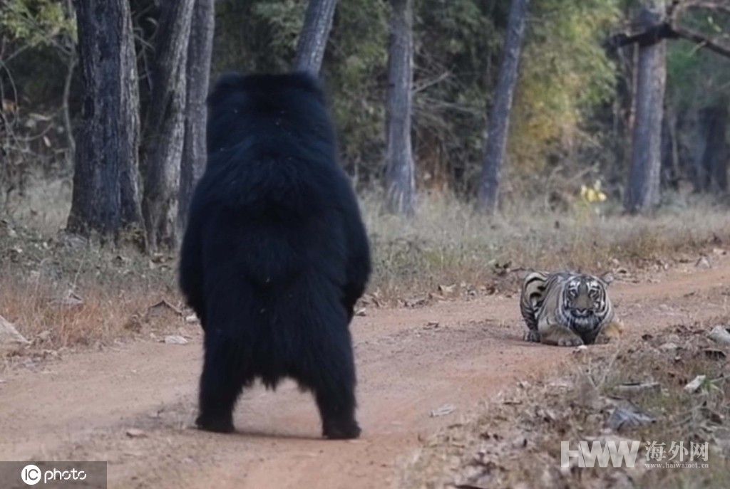 摄影师记录丛林猛兽相遇 黑熊站立气场碾压老虎