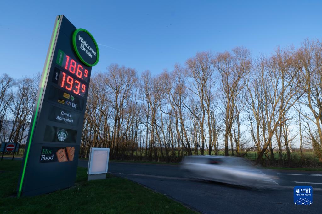 3月17日,一辆汽车经过英国沃灵顿一处加油站。近日,英国油价持续上涨。新华社发(乔恩·休珀摄)