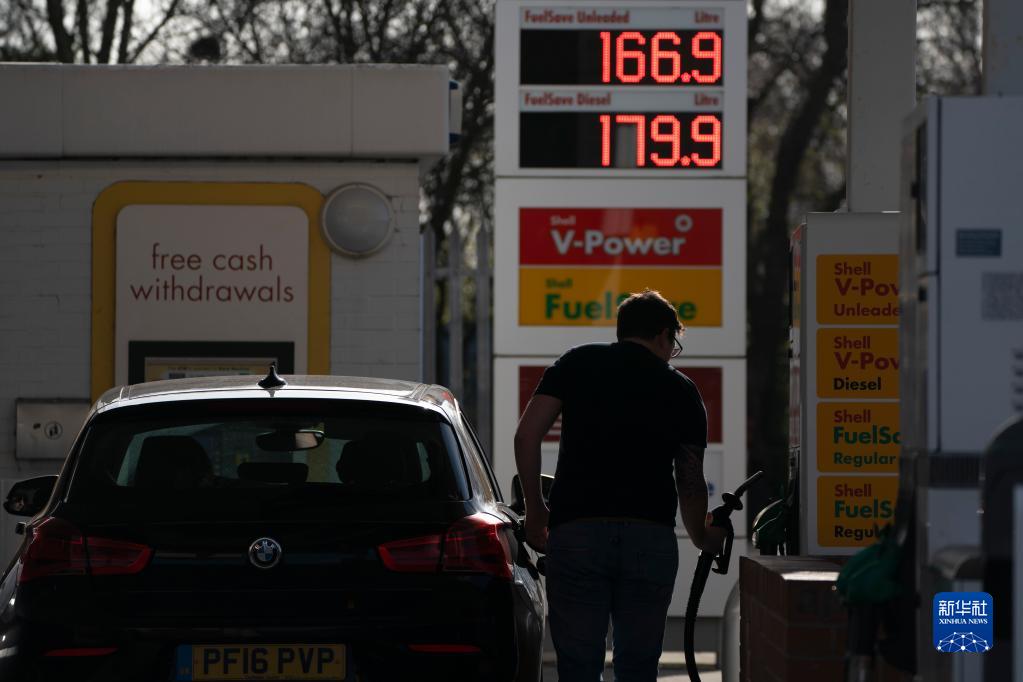 3月17日,一名男子在英国切希尔一处加油站加油。近日,英国油价持续上涨。新华社发(乔恩·休珀摄)