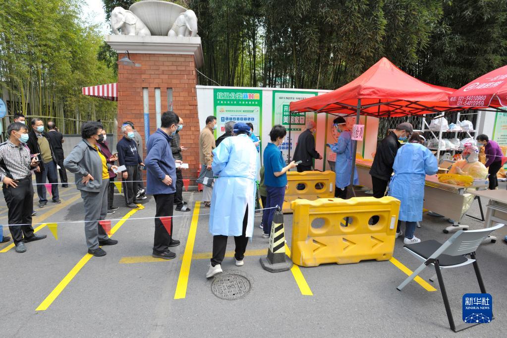 3月13日,上海市明园小安桥小区的居民排队等待接受核酸检测。新华社记者 高峰 摄