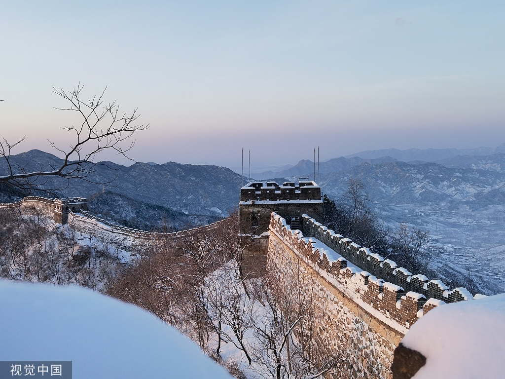 3月19日,北京雪后的慕田峪长城银装素裹分外妖娆。图片来源:签约供稿人/视觉中国