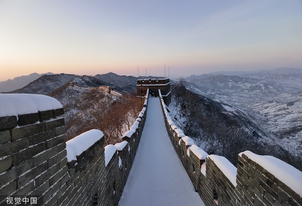 3月19日,北京雪后的慕田峪长城银装素裹分外妖娆。图片来源:签约供稿人/视觉中国