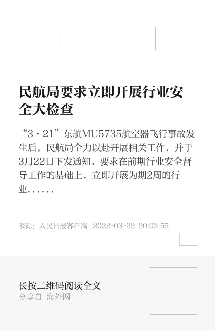 “3·21”东航MU5735航空器飞行事故发生后,民航局全力以赴开展相关工作,并于3月22日下发通知,要求在前期行业安全督导工作的基础上,立即开展为期2周的行业安全大检查,旨在进一步强化底线思维,加强民用航空领域安全隐患排查,确保航空运行绝对安全,确保人民生命绝对安全。