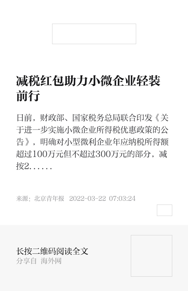 日前,财政部、国家税务总局联合印发《关于进一步实施小微企业所得税优惠政策的公告》,明确对小型微利企业年应纳税所得额超过100万元但不超过300万元的部分,减按25%计入应纳税所得额,按20%的税率缴纳企业所得税。公告执行期限为2022年1月1日至2024年12月31日。