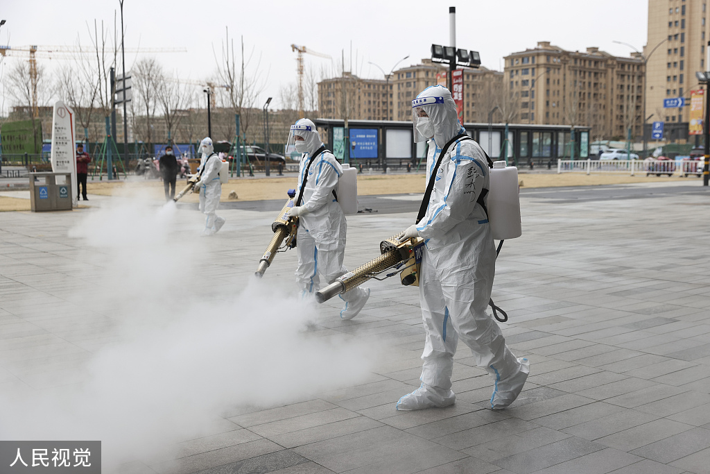 近日,江苏省连云港市低风险区域实行常态化疫情防控,恢复正常生产生活秩序。为保障复工复产需求,连云港市赣榆区组织消杀队对农贸市场、客运站、商业广场等重点公共区域进行全面消杀,保障人们出行安全。图源:人民视觉