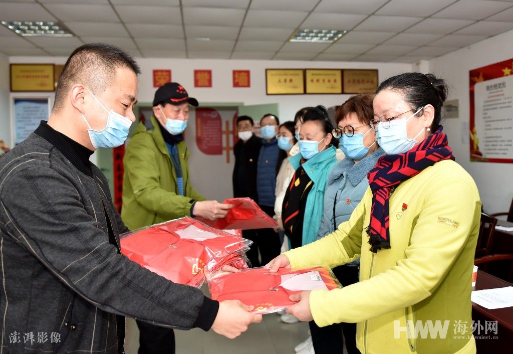2022年3月22日,在安徽省合肥市庐阳区大杨镇水木春城小区,吴郢社区党委书记张俊军(左一)为党员志愿者发放红马甲。为助力社区开展疫情防控工作,合肥市庐阳区大杨镇水木春城小区党员积极响应社区党委号召,成立了水木春城党员志愿者服务队,服务队将志愿协助社区开展核酸检测、疫情防控等工作,为小区居民健康安全做好保障。(图:澎湃影像)