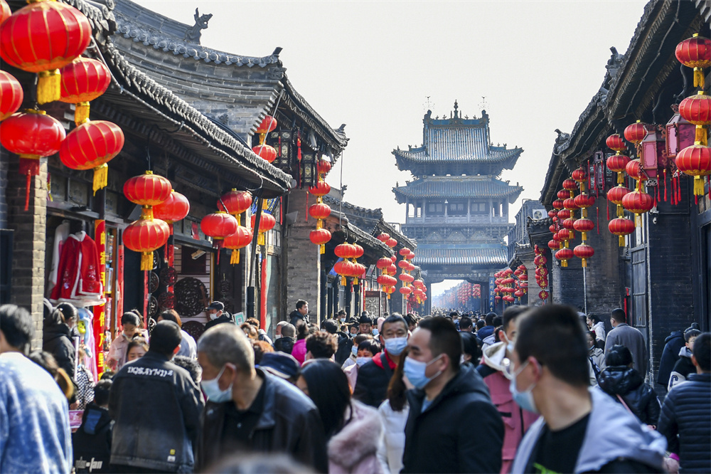 游客在山西省晋中市平遥古城内参观(2月8日摄)。新华社记者 曹阳 摄