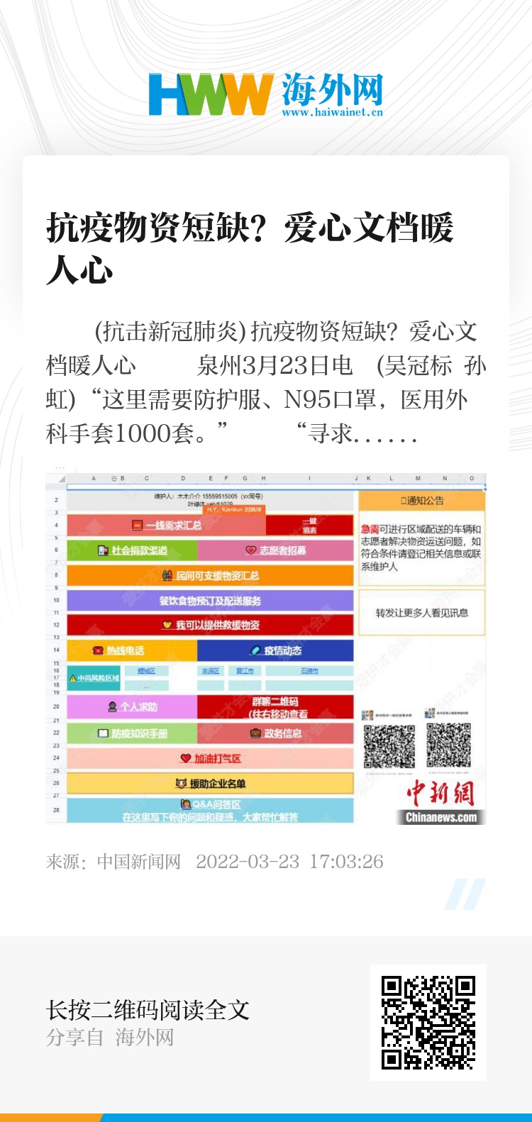 于是,她临时赶制了一份“所有人可编辑”的疫情需求对接线上文档,并于3月20日凌晨建立了一个“泉州民间一线抗疫需求群”。
