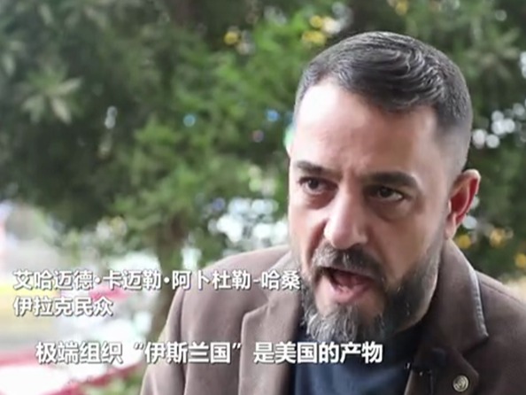 巴格达市民艾哈迈德·卡迈勒·阿卜杜勒-哈桑说,美国给伊拉克带来了混乱、恐怖主义和犯罪,“极端组织‘伊斯兰国’是美国的产物”。(报道员:哈利勒·达乌德;剪辑:孙硕;编辑:孙浩、鲁豫;海报:实习生刘欣然)