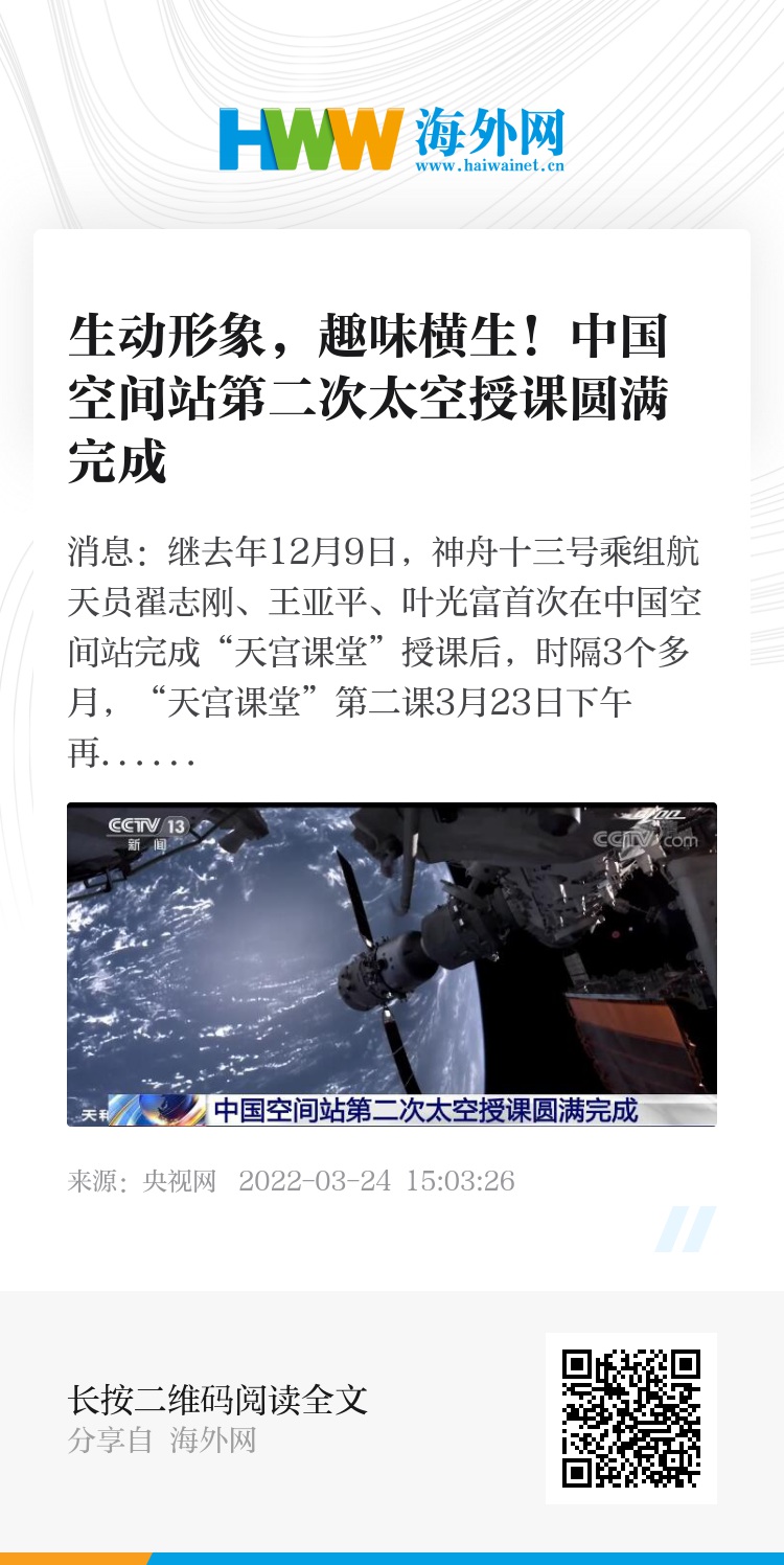 央视网消息:继去年12月9日,神舟十三号乘组航天员翟志刚、王亚平、叶光富首次在中国空间站完成“天宫课堂”授课后,时隔3个多月,“天宫课堂”第二课3月23日下午再次开讲。23日的天宫课堂上三位航天员都讲了什么,演示了哪些实验?