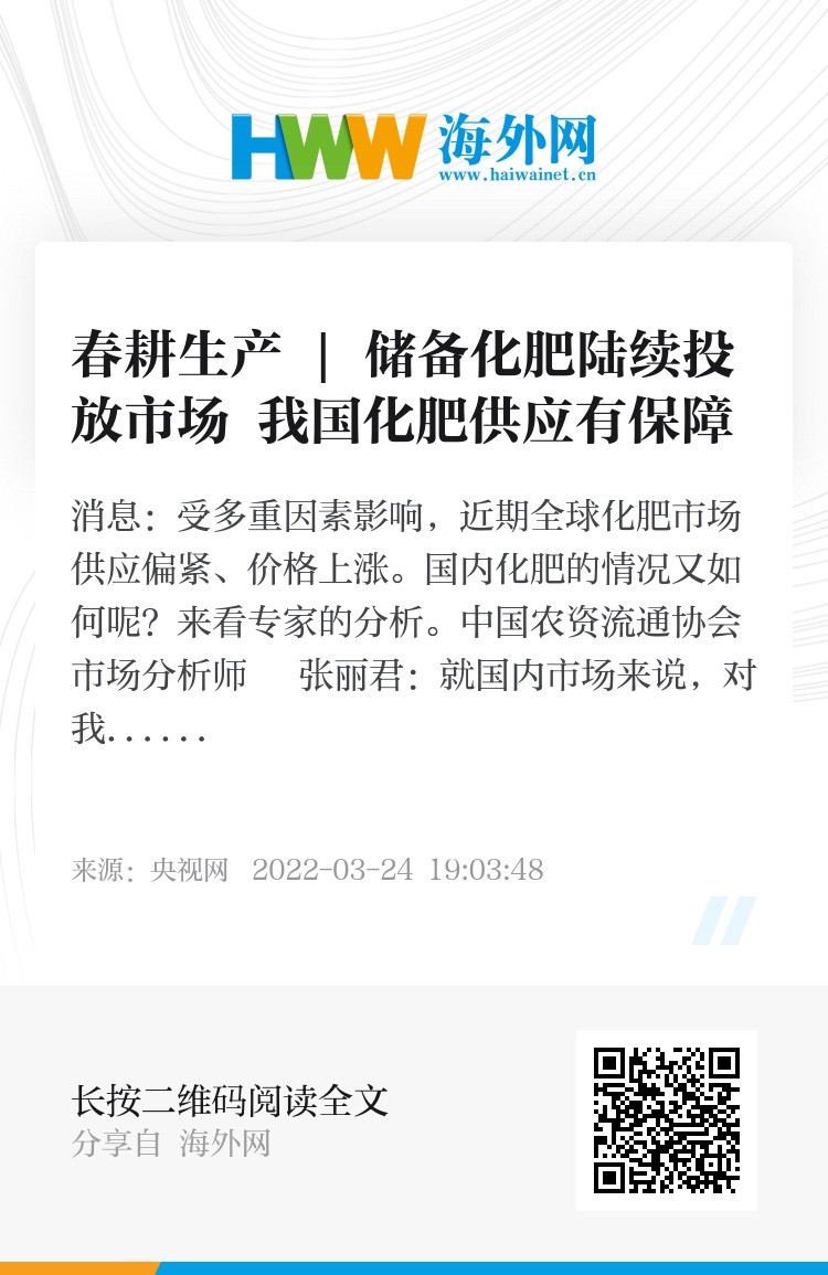 央视网消息:受多重因素影响,近期全球化肥市场供应偏紧、价格上涨。国内化肥的情况又如何呢?来看专家的分析。