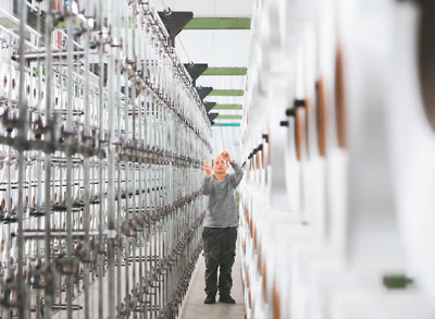 3月24日,在江西省石城县古樟工业园,一家纺织公司的生产车间里,工人正在忙碌。连日来,该公司在做好疫情防控的同时,开足马力赶制订单,冲刺一季度“开门红”。温京燕摄(人民视觉)